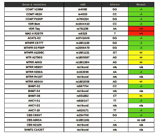 Even for those in apparent ‘excellent health’ a genetic profile can indicate ‘susceptibilities’ toward certain health conditions, particularly in later life. So, if for instance, a profile shows errors of methylation that could predispose an individual to Alzheimer’s then it may be advisable for that person to take higher and ongoing levels of methyl donor nutrients (for example), than someone without that susceptibility.