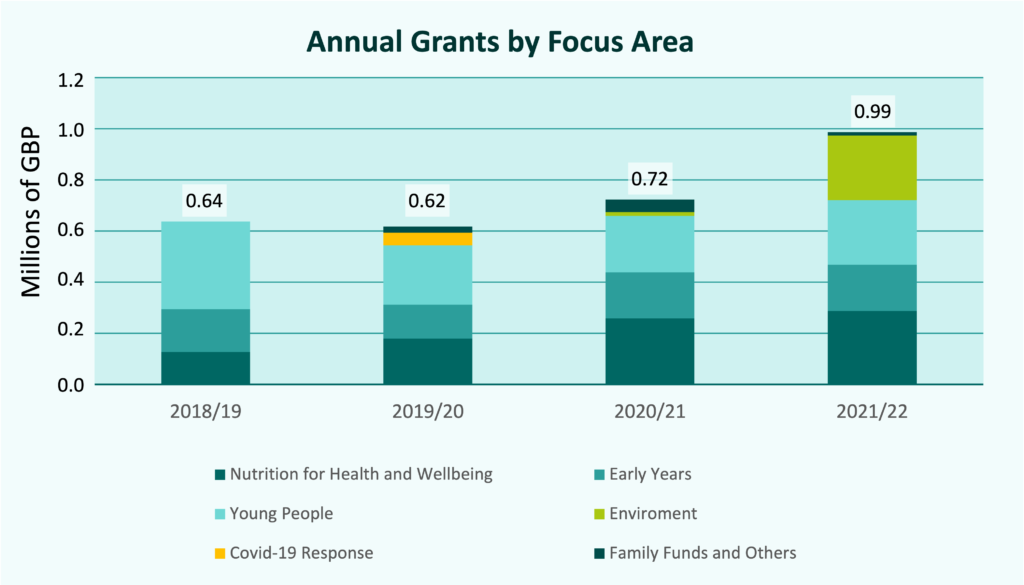 A grant of £100,000 was made towards their Environmental and Learning Fund. This provides an opportunity to collaborate with EFF and other funders in early stage, higher risk, impact driven nature based social investments. Trustees are participating in the peer learning programme in order to build our knowledge of impact investing.
