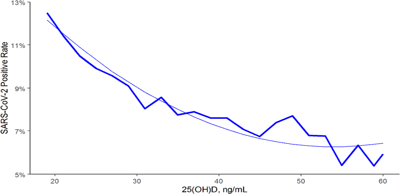 - Kaufman HW, Niles JK, Kroll MH, Bi C, Holick MF (2020) SARS-CoV-2 positivity rates associated with circulating 25-hydroxyvitamin D levels. PLOS ONE 15(9): e0239252. https://doi.org/10.1371/journal.pone.0239252