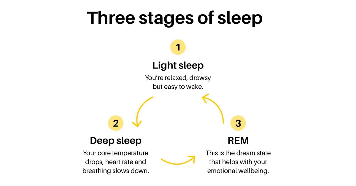 Did you know that your night of sleep breaks down into multiple sleep cycles? This cycle consists of 4 stages, 3 of which are classed as NREM (rapid eye movement) sleep and one non-REM (NREM) sleep.